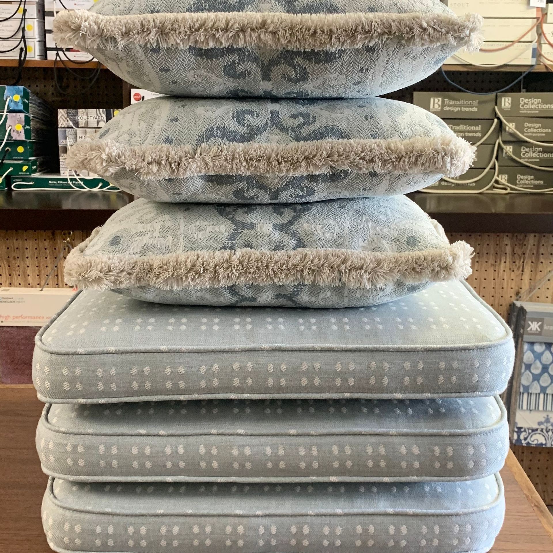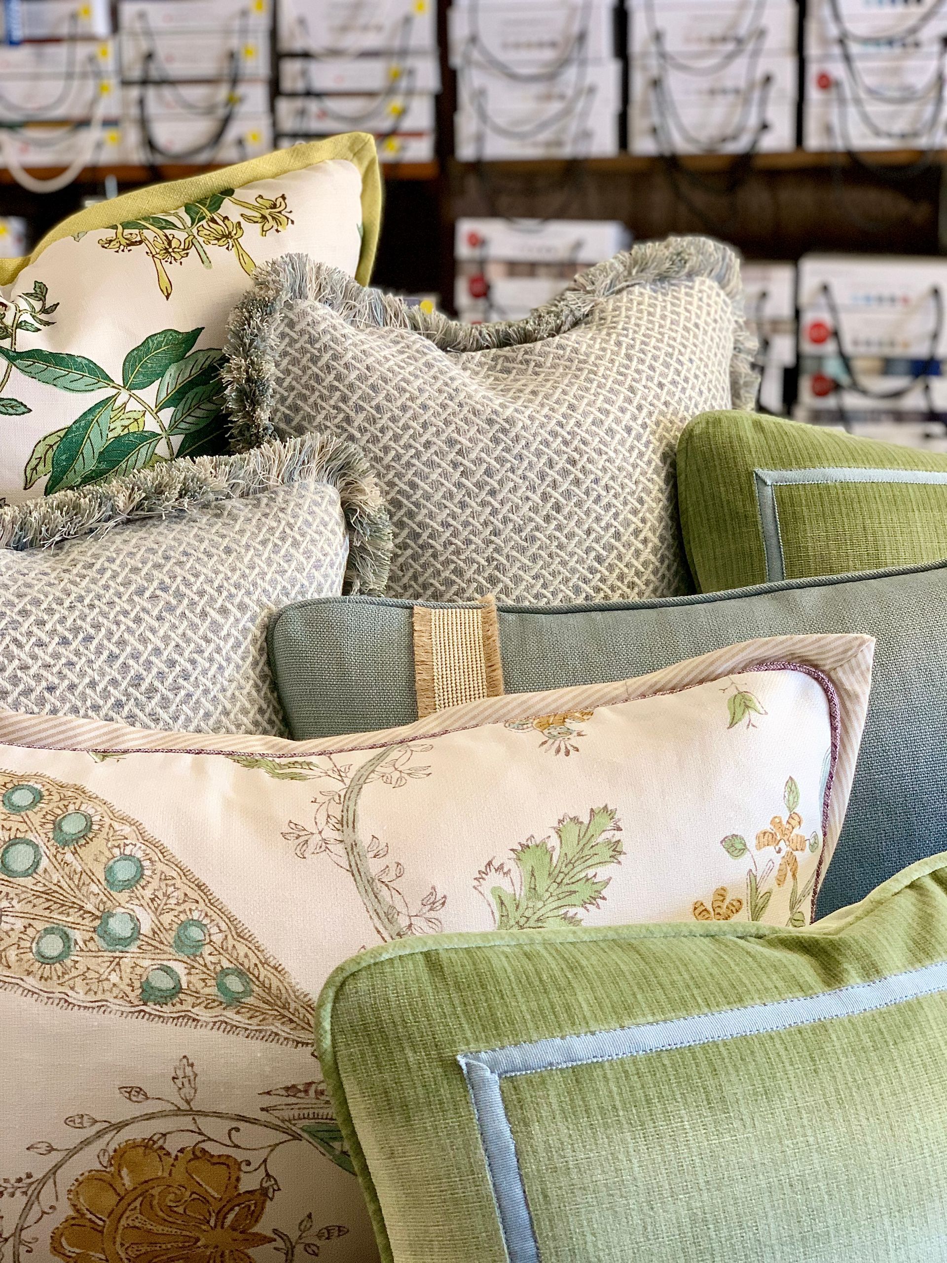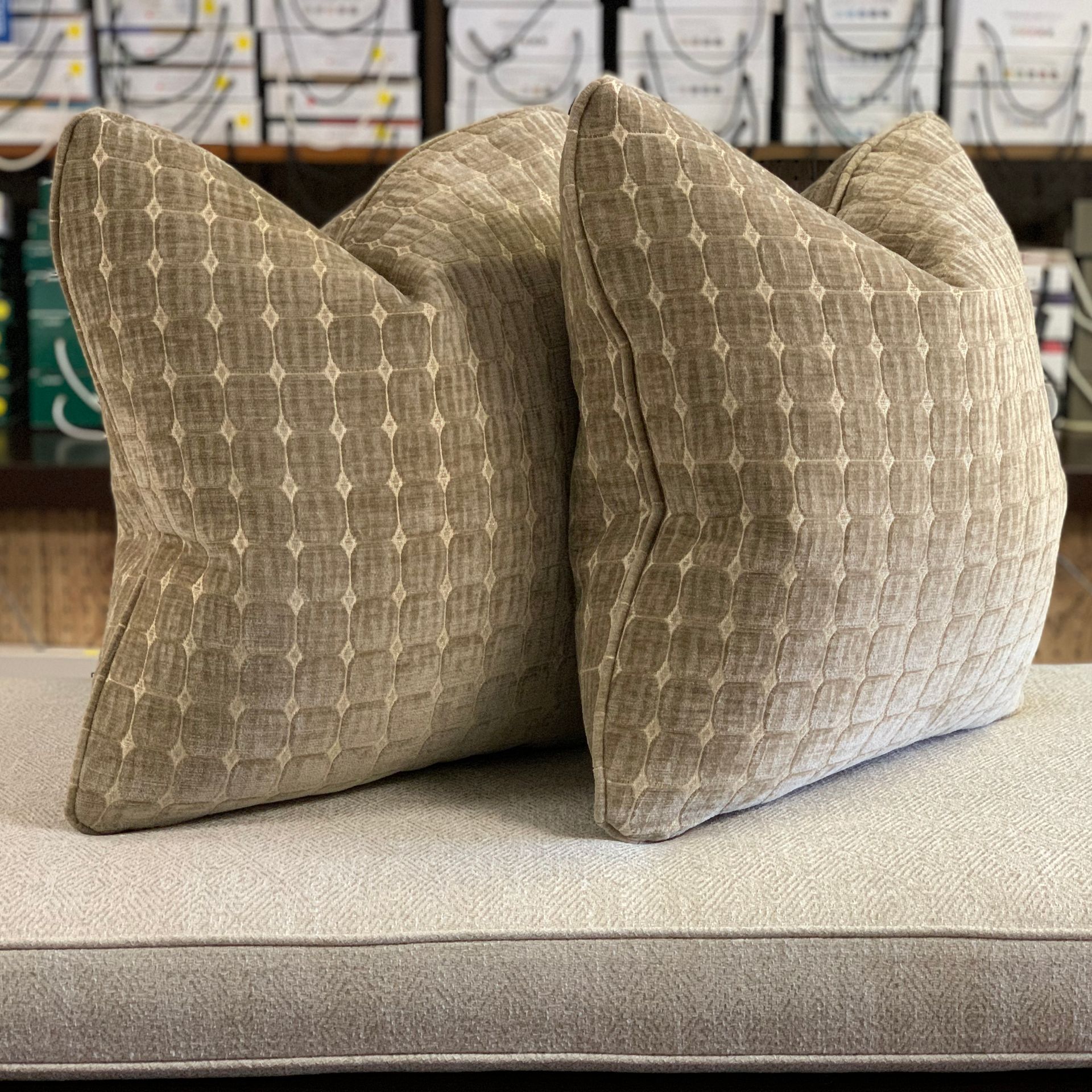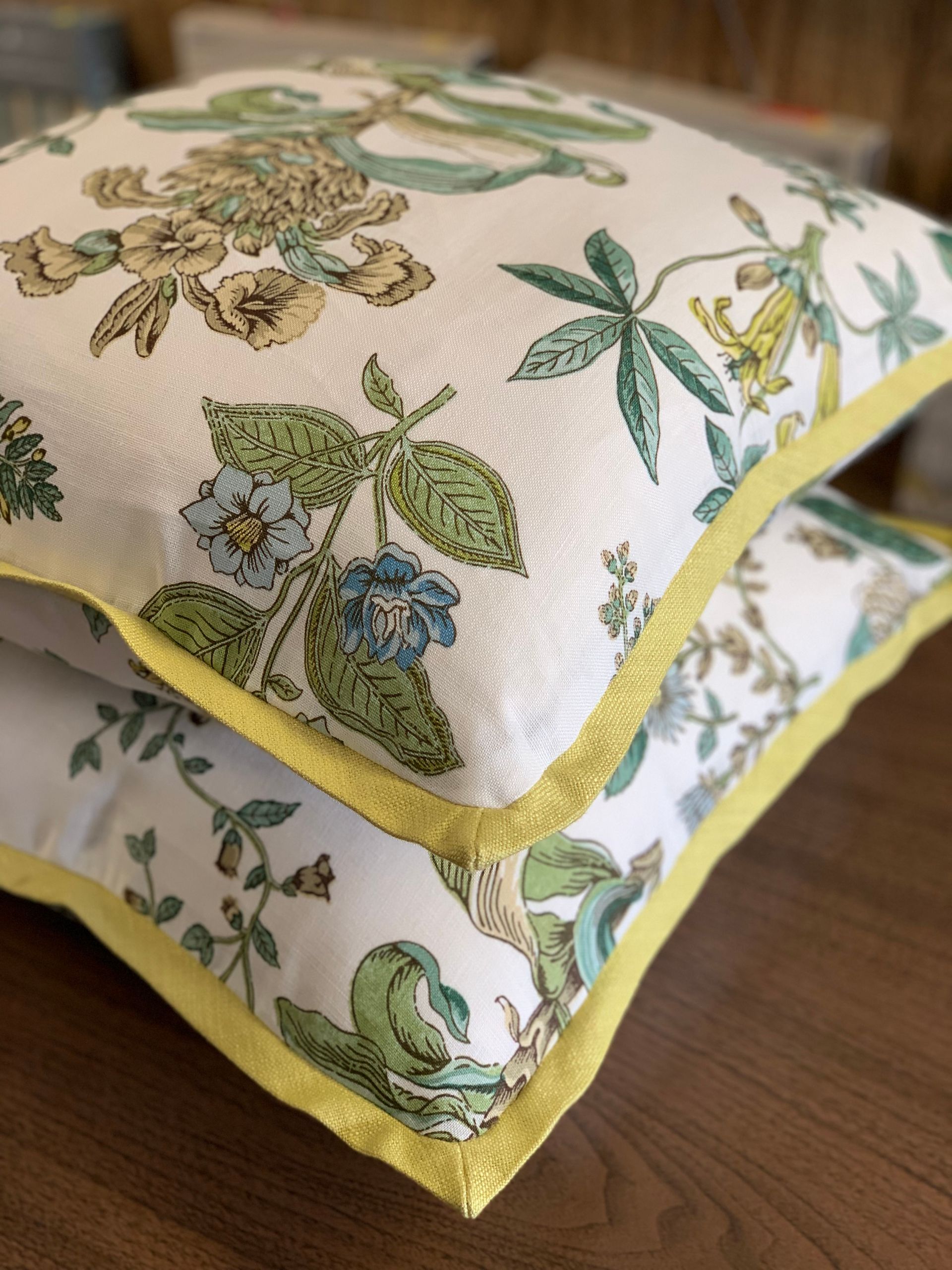 We offer custom pillows and cushions, made to order with your choice of a polyester or down/feather fill.